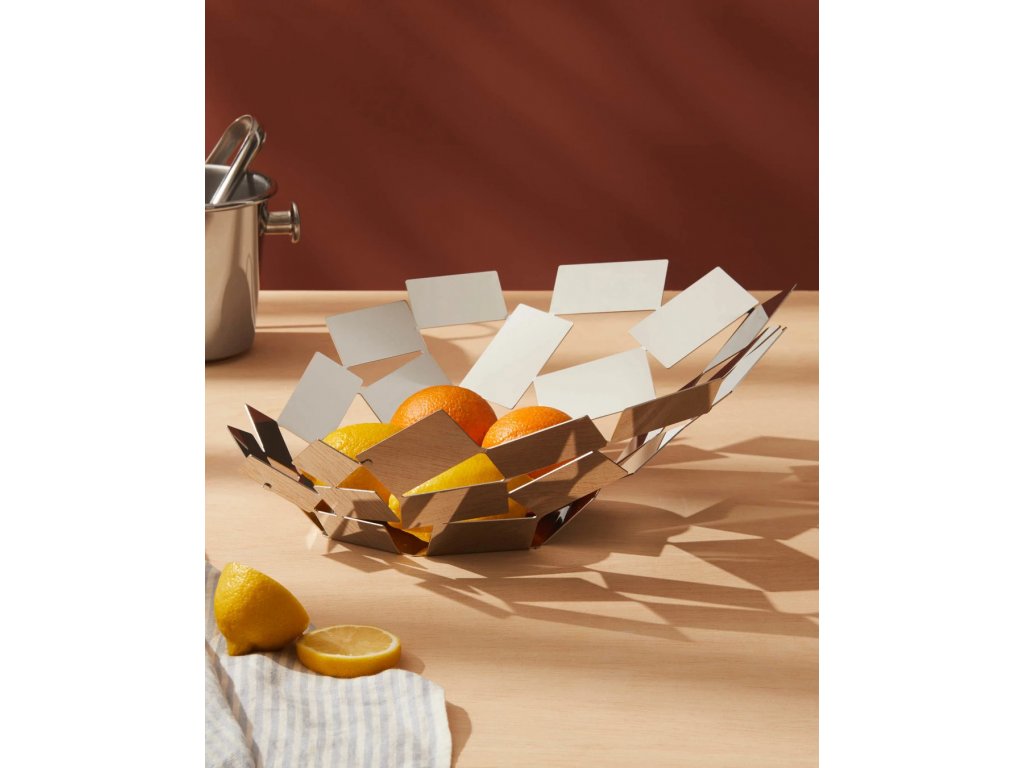 Skleda za sadje iz oblikovalske kolekcije La Stanza dello Scirocco, ki jo je zasnoval sicilijanski oblikovalec Mario Timarchi. Navdih za kolekcijo je čarobno vzdušje starih sicilijanskih hiš, katerih sobe nimajo oken in imajo običajno le eno luč. Njihovi prebivalci čakajo, da se umiri velika vročina in suh južni veter Scirocco, ki prinaša oblake peščenega prahu iz Sahare. Zbirka z majhnimi fragmenti različnih velikosti in geometrijsko nepravilnostjo ponuja zanimivo neravnovesje svetlobe in sence.