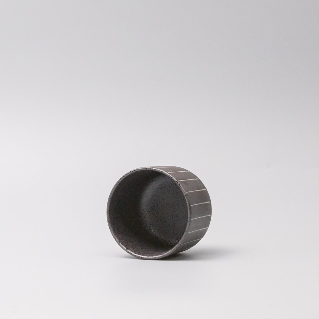 - Mat glazura črna s finimi svetlimi linijami ustvarja zanimiv kontrast in daje skodelici vizualno globino.