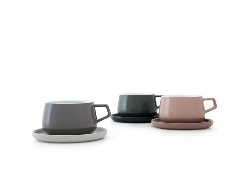 Skodelica za čaj s krožnikom ELLA CLASSIC, 250 ml, siva, Viva Scandinavia