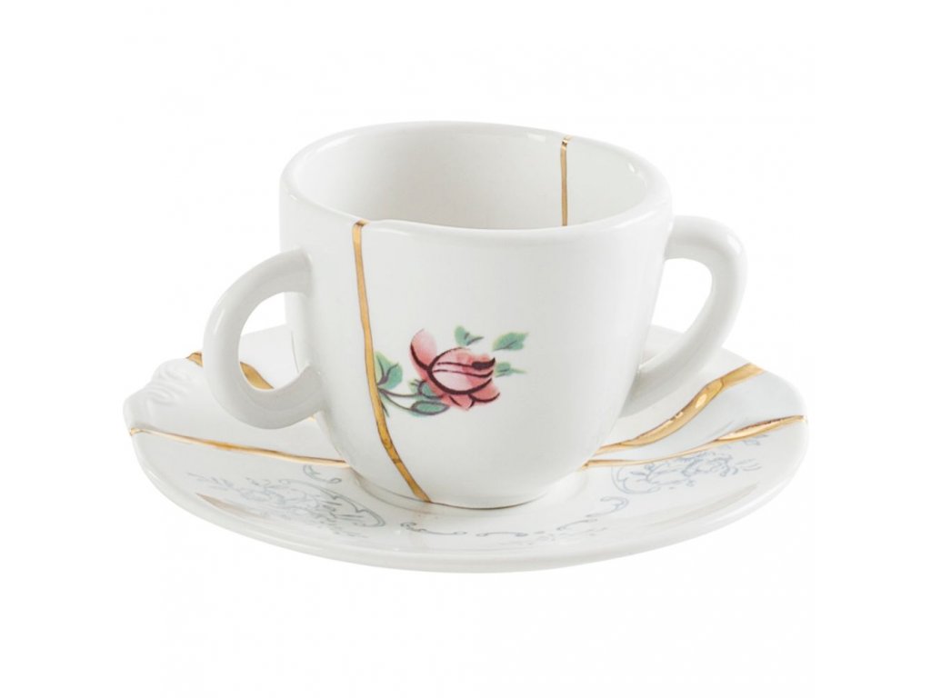 Skodelica za kavo s krožnikom KINTSUGI 1, bela, Seletti