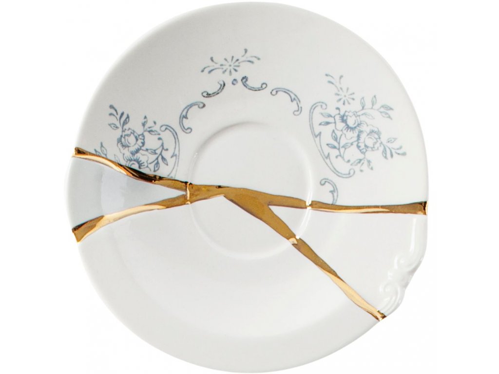 - oblikovanje temelji na japonski umetnosti kintsukuroi - popravljanju razbite keramike z zlatim lakom v prahu