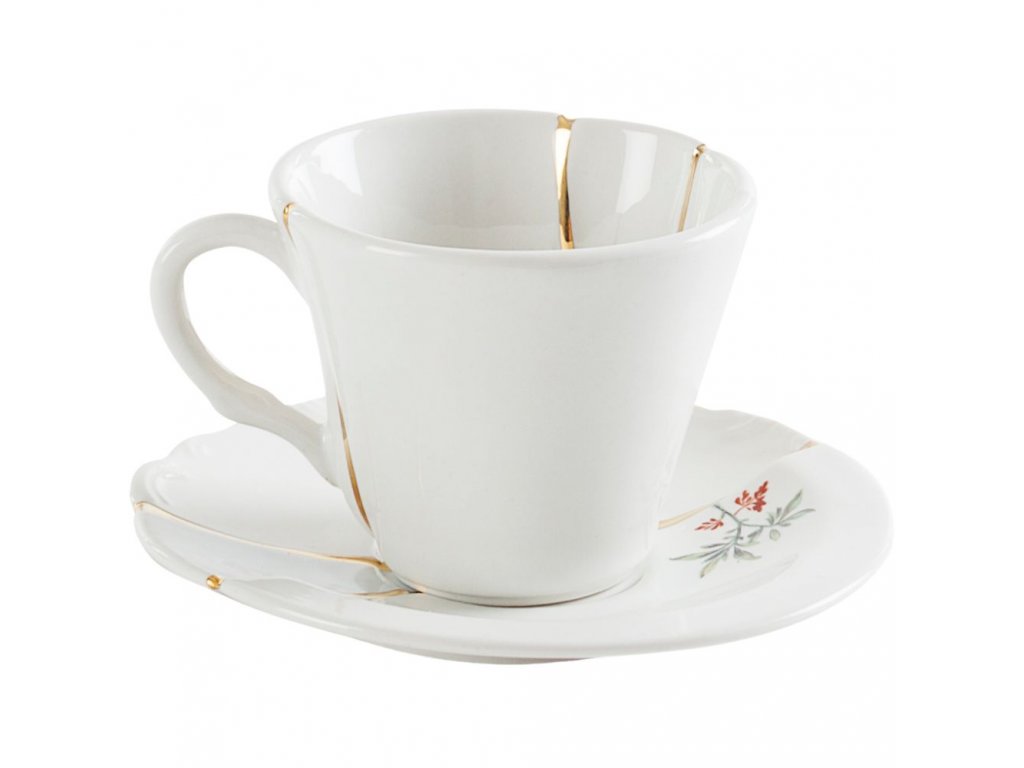 Skodelica za kavo s krožnikom KINTSUGI 3, bela, Seletti