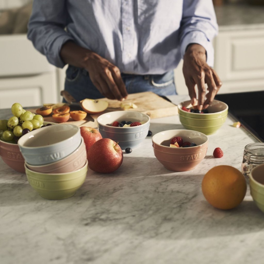 - Komplet keramičnih skled Staub vsebuje 6 kosov s premerom 14 cm in prostornino 0,7 litra za serviranje sladic, zajtrka ali prilog