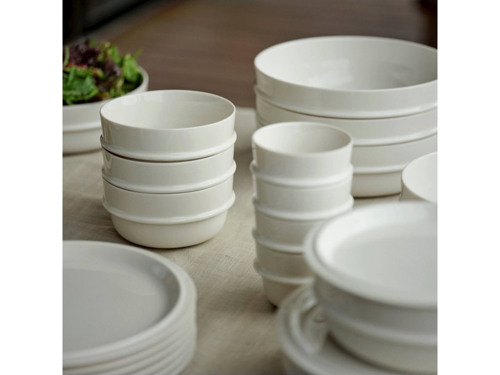 - nežen bel odtenek prispeva k prijetnemu vzdušju za mizo in ga je enostavno kombinirati z drugo namizno posodo