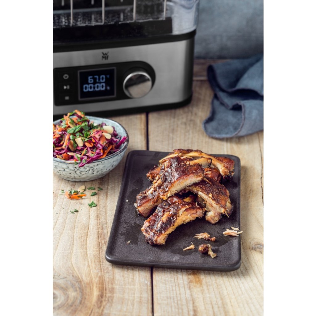 Z električnim počasnim loncem Sous vide lahko meso in zelenjavo pripravite kot profesionalec. Z nastavljivo temperaturo in časovnikom lahko hrano na točno določeni temperaturi kuhate do 72 ur. Natančnost je pomemben dejavnik sodobne tehnološke priprave sous vide. Kuhate lahko na dva načina - Sous vide ali v 3l loncu iz nerjavečega jekla.