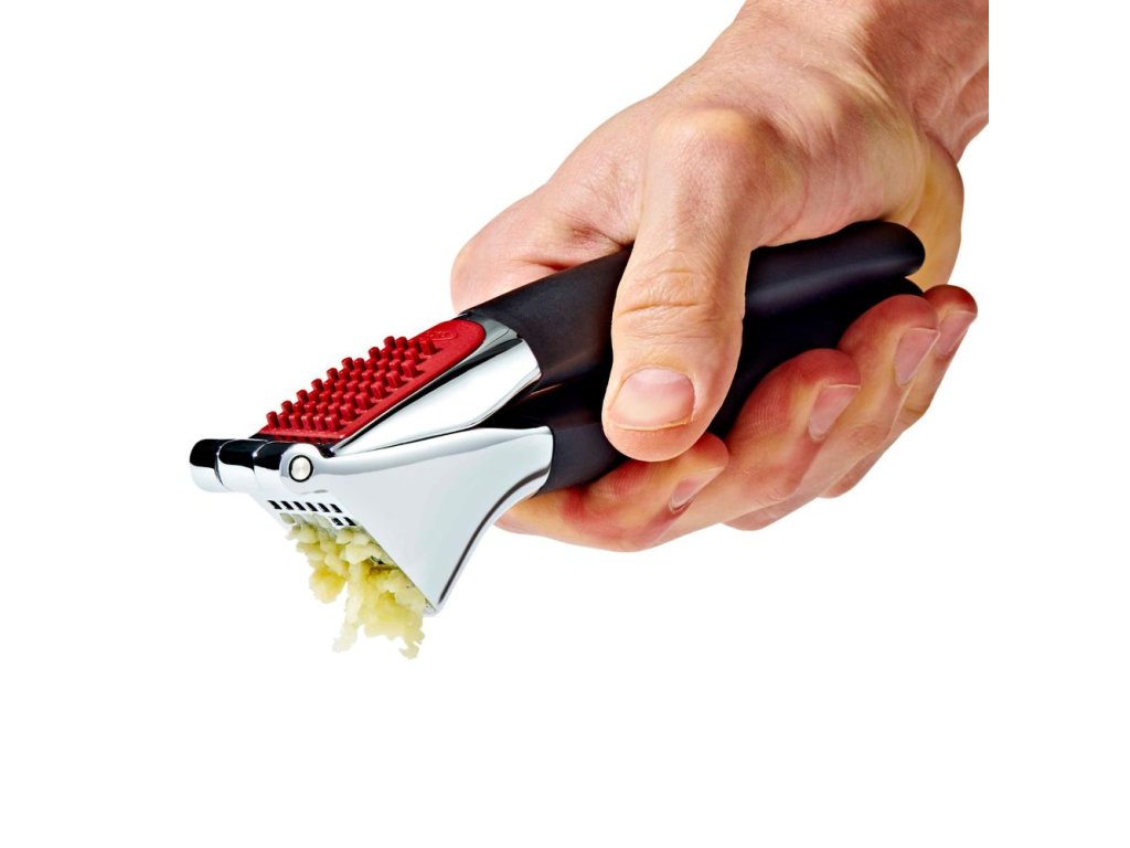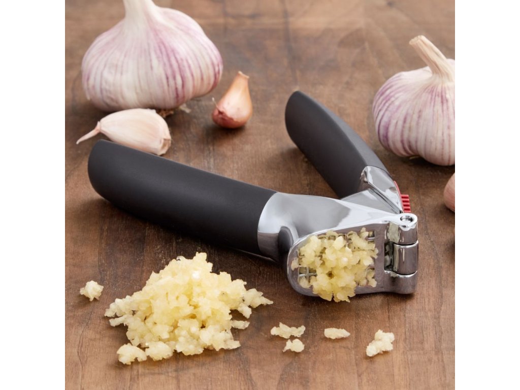 Stiskalnik za česen GOOD GRIPS, 18 cm, črna, iz nerjavečega jekla, OXO