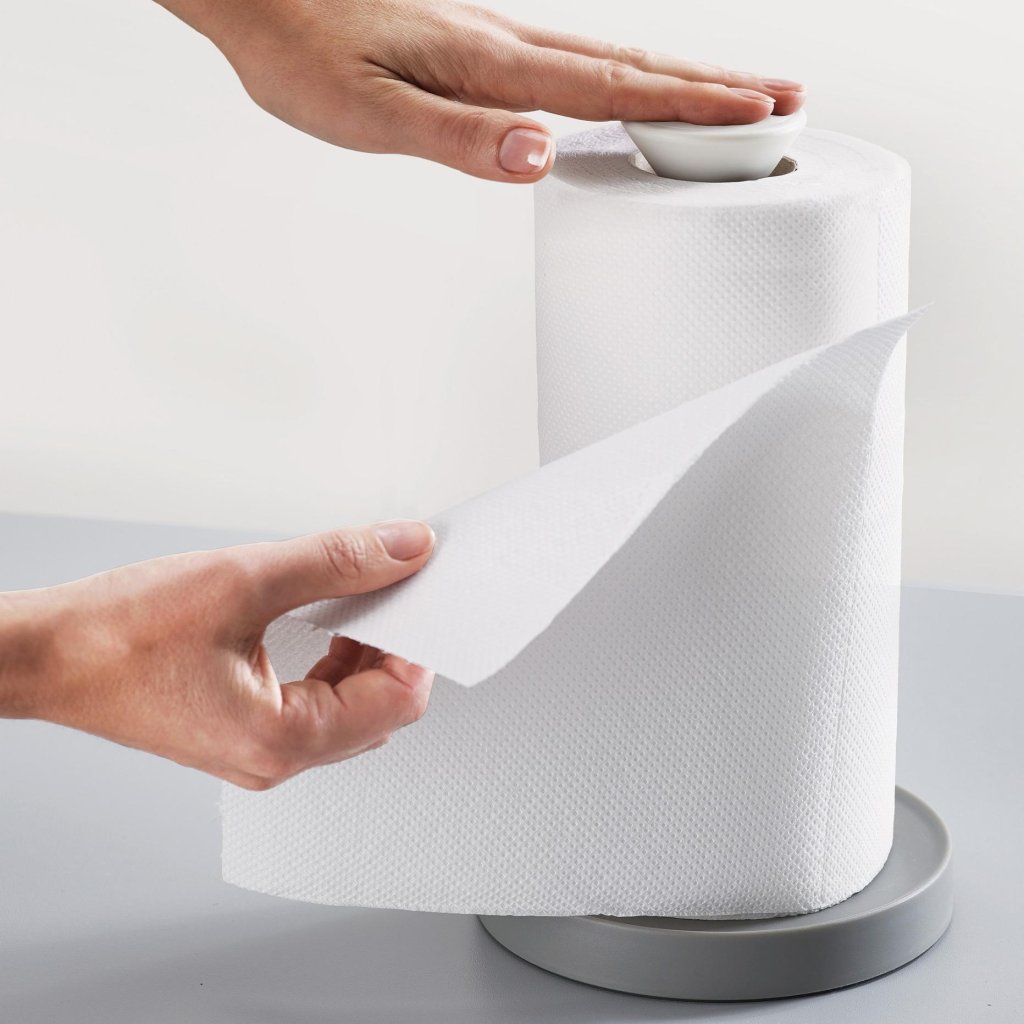 - Stojalo za papirnate brisače Joseph Joseph DUO prinaša praktično in elegantno rešitev za vsakdanjo uporabo v kuhinji, kjer boste cenili hitro in udobno odtrganje vsakega posameznega dela.
