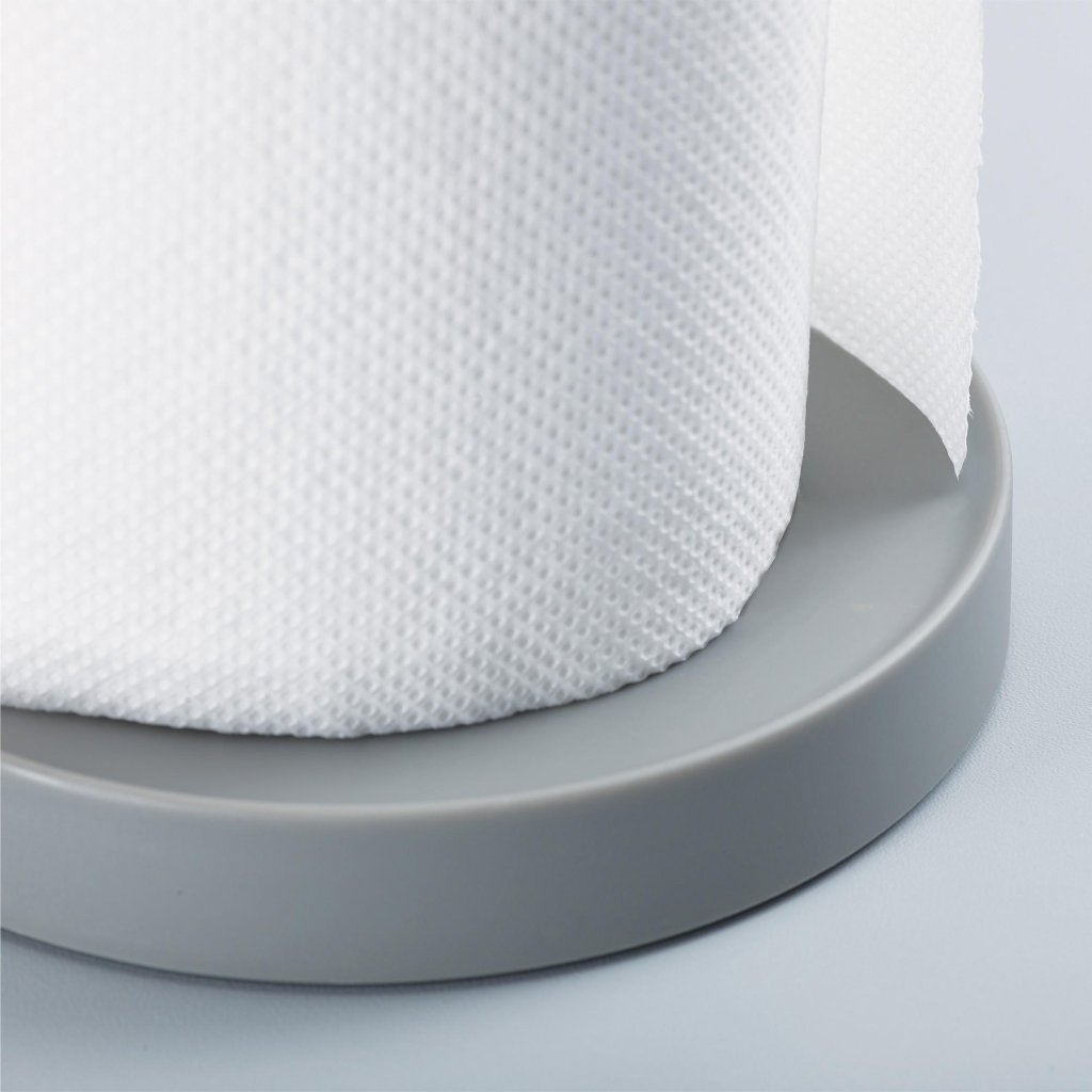 - Stabilna podlaga se trdno drži na delovni plošči in zagotavlja varnost pri rokovanju, tudi če morate brisačo odtrgati samo z eno roko.