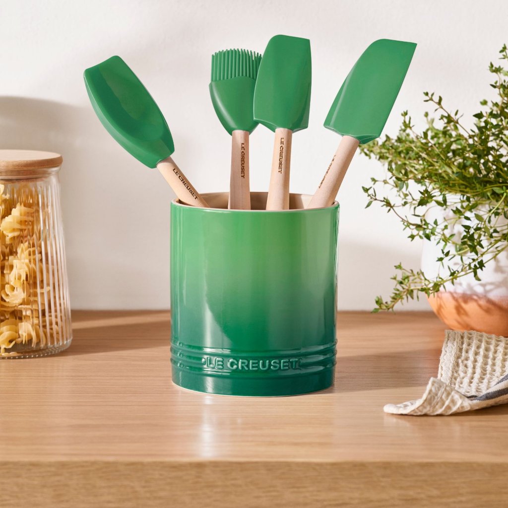 - Keramično stojalo za kuhinjski pripomočki Le Creuset v odtenku BAMBOO bo vaše lesene žlice, lopatice, metlice in druge pripomočke lepo in elegantno shranilo pri roki.