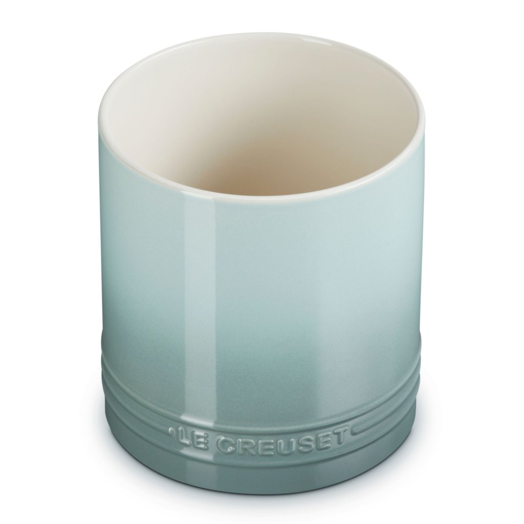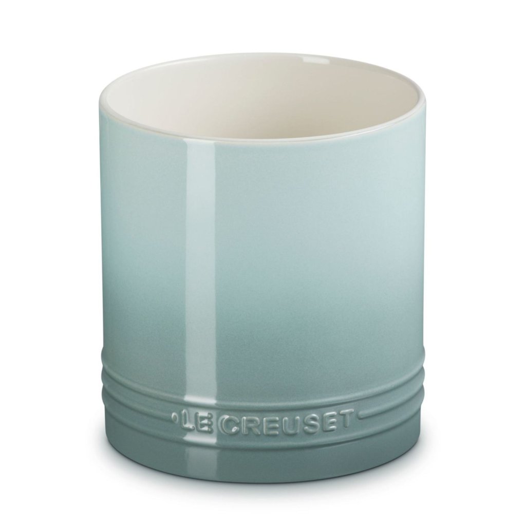 - Keramično stojalo za kuhinjski pripomočki Le Creuset v odtenku SEA SALT bo vaše lesene žlice, lopatice, metlice in druge pripomočke lepo in elegantno shranilo pri roki.