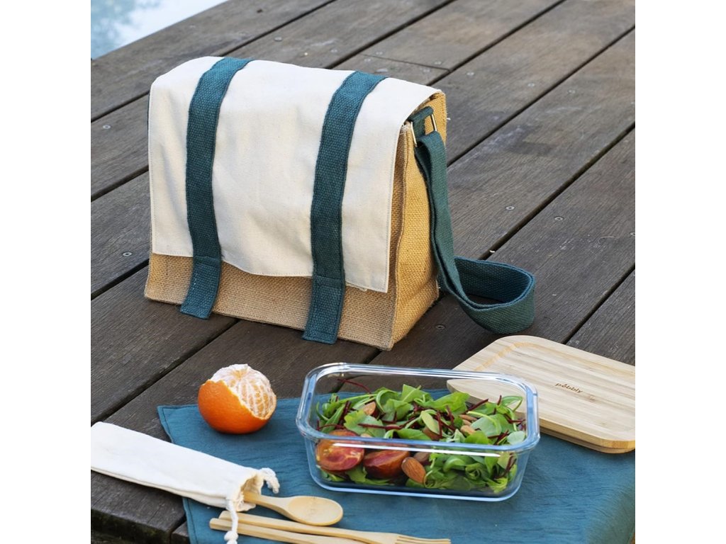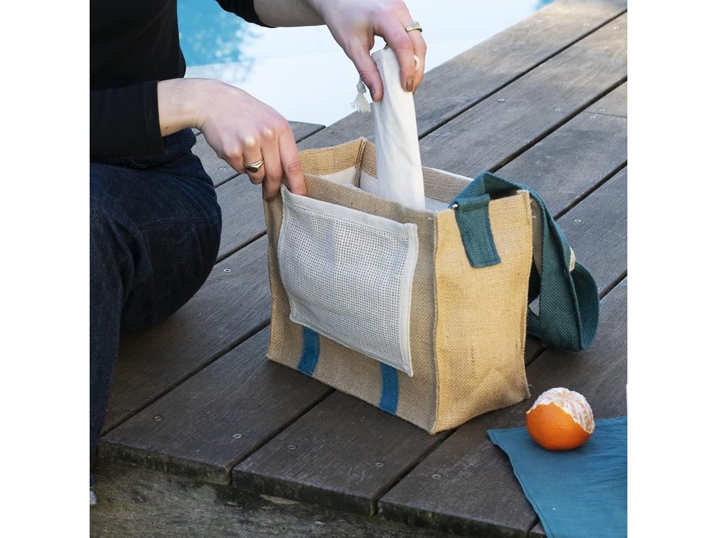 - praktična vrečka za kosilo iz organskega bombaža in jute