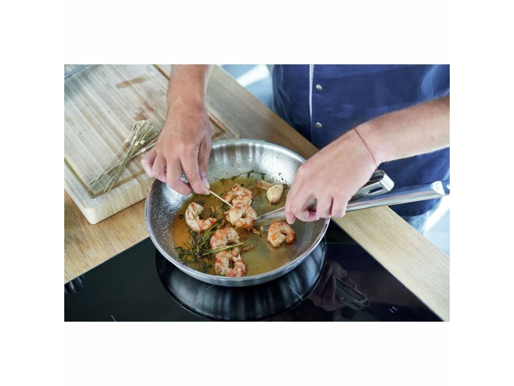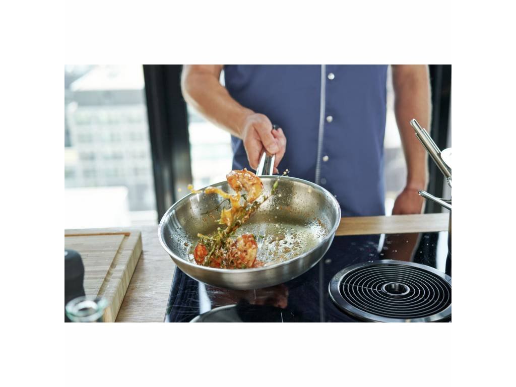 Ponev Zwilling Pro je izdelana iz vrhunskega 3-slojnega materiala SIGMA Clad. Robustno aluminijasto jedro, ovito z dvema plastema jekla, zagotavlja hiter in enakomeren prenos toplote po celotni površini ponve, zato je idealna za cvrtje. Ko se segreje, lahko kmalu zmanjšate dovod toplote in tako prihranite energijo. Nasprotno pa ročaj ostane hladen tudi med dolgotrajno uporabo, zato je udoben za uporabo. Ponev ima tudi privlačno satenasto gladko površino, ki je občutno bolj odporna na praske. Tako se lahko v miru posvetite svojim kuharskim veščinam.