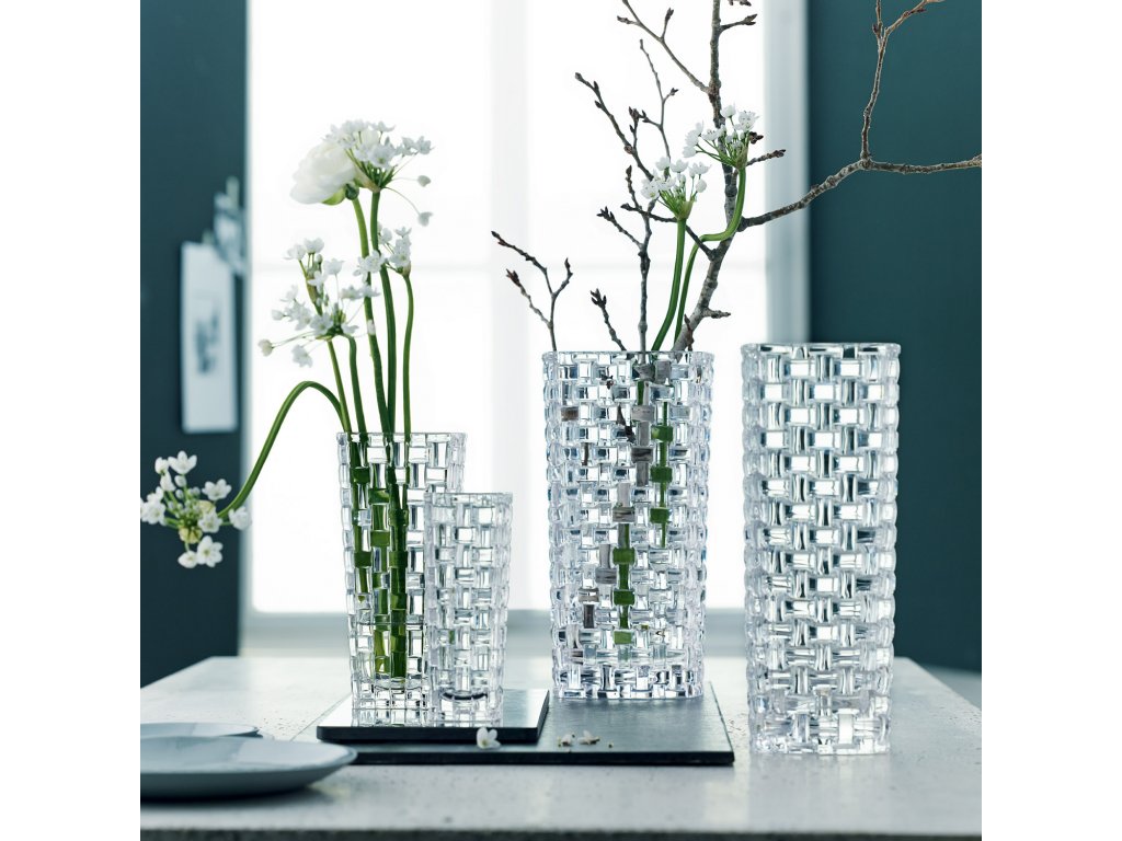Visoka in široka vaza iz kolekcije Bossa Nova vas bo prepričala že ob prvem dotiku. Serija ponuja kristalno namizno posodo in dodatke, ki so tako zapeljivi in očarljivi za čute kot sama glasba in ples bossa nova. Čiste oblike posameznih kosov stekla poživlja reliefni pleteni vzorec, ki vabi prste, da se jih dotaknejo. V kolekciji Bossa Nova nemškega proizvajalca Nachtmann se skriva čar, ki vas podzavestno spodbuja, da s prijatelji ostanete za mizo malo dlje in uživate skupaj.