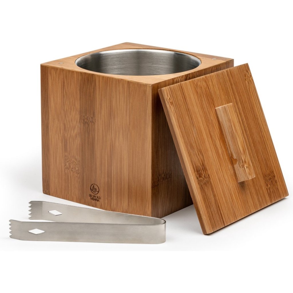 Vedro za led s kleščami BAROLO 1,8 l, rjava, bambus / nerjaveče jeklo, Leopold Vienna