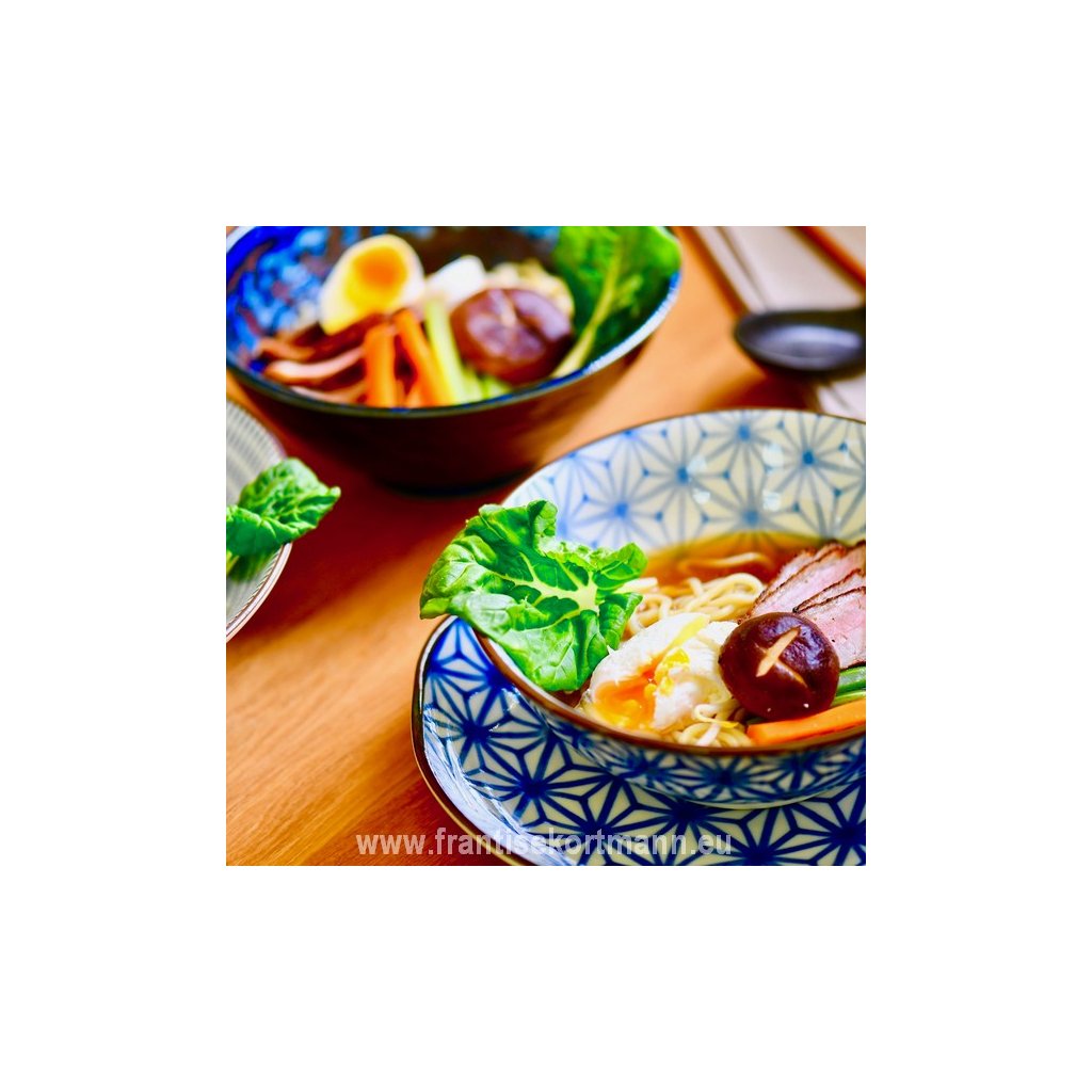 Velika skleda iz kolekcije Indigo Ikat MIJ je ročno izdelana iz trajne naravne keramike, ki ne vsebuje škodljivih primesi ali težkih kovin. Izdelujejo ga japonski mojstri, katerih tradicija sega v 12. stoletje. Barve so visokokakovostne, se ne lu ščijo in ne vsebujejo škodljivih snovi.