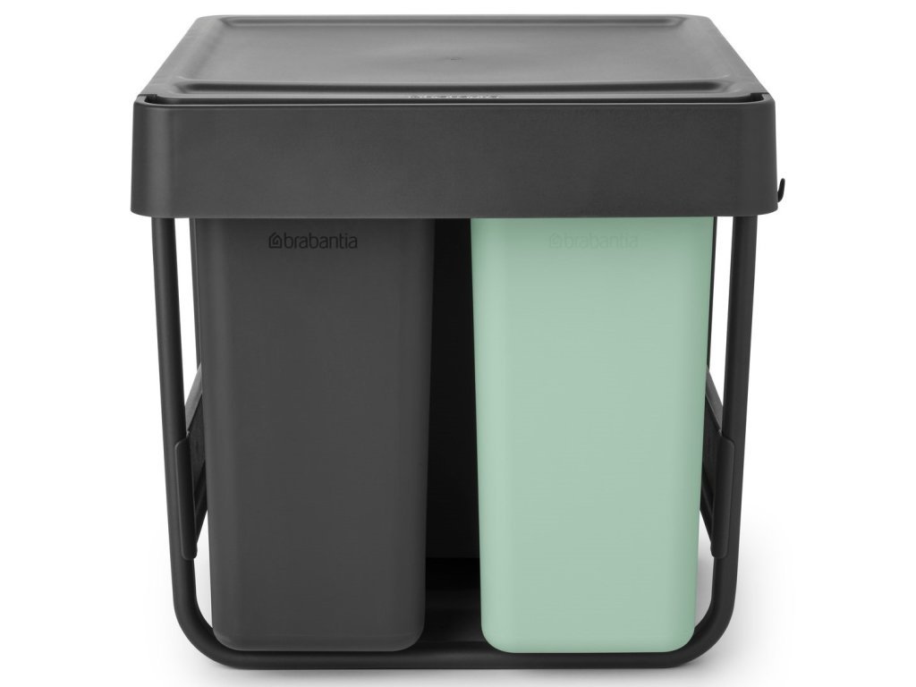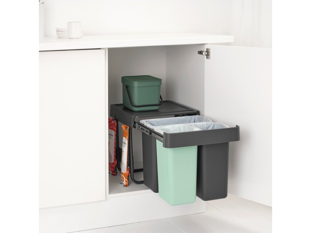 Vgradni koš za smeti SORT & GO 2x 10 l + 1x 20 l, temno siva / žad zelena, plast, Brabantia