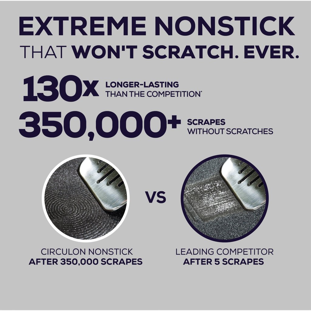 - trojni premaz Extreme Non-Stick je laboratorijsko preizkušen za več kot 200 let vsakodnevne uporabe in zagotavlja revolucionarno izkušnjo kuhanja brez prijemanja