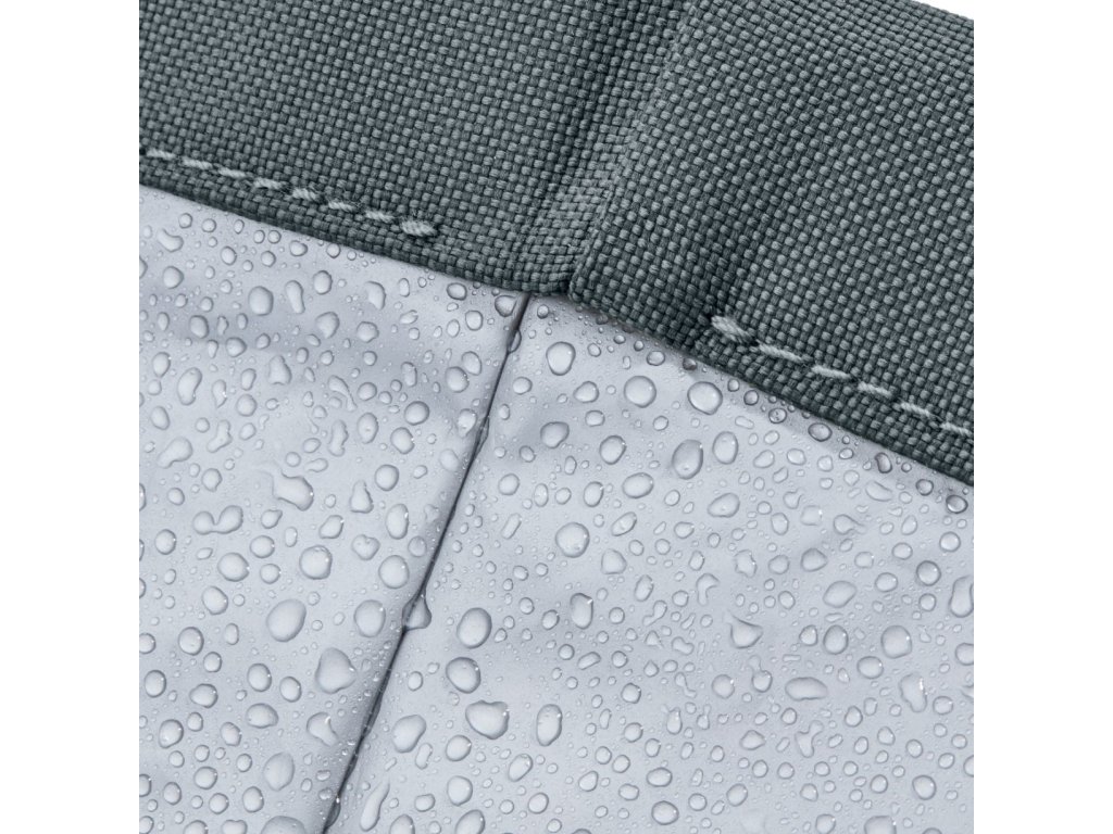 - izdelan iz trpežne tkanine z vodoodporno prevleko, ki ščiti vsebino pred vlago in umazanijo