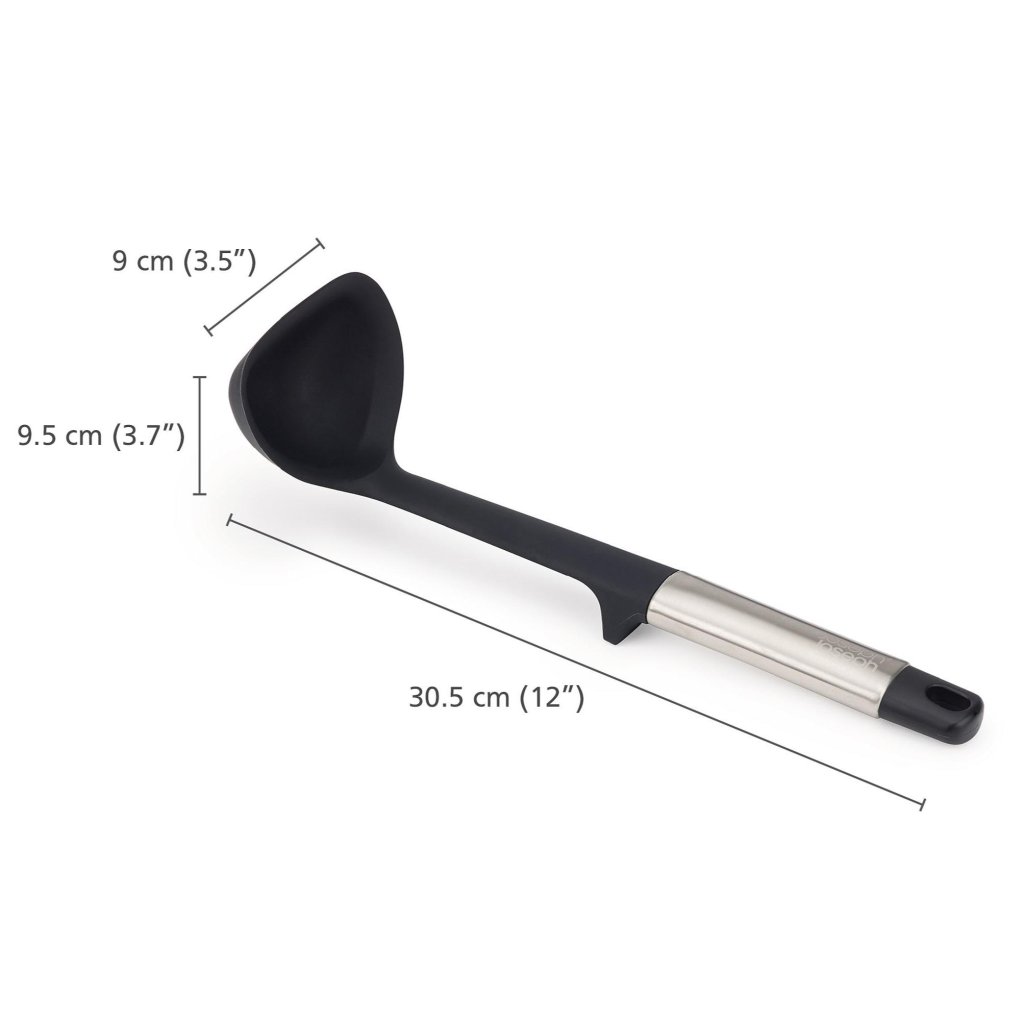 - Ergonomsko oblikovan ročaj zagotavlja trden in udoben oprijem pri zajemanju juh, omak ali drugih tekočih jedi.
