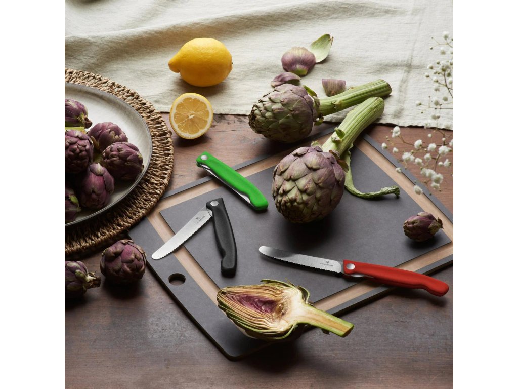 - nož je zložljiv in vedno pripravljen za uporabo, saj ga lahko pospravite v nahrbtnik, košarico za piknik ali torbico