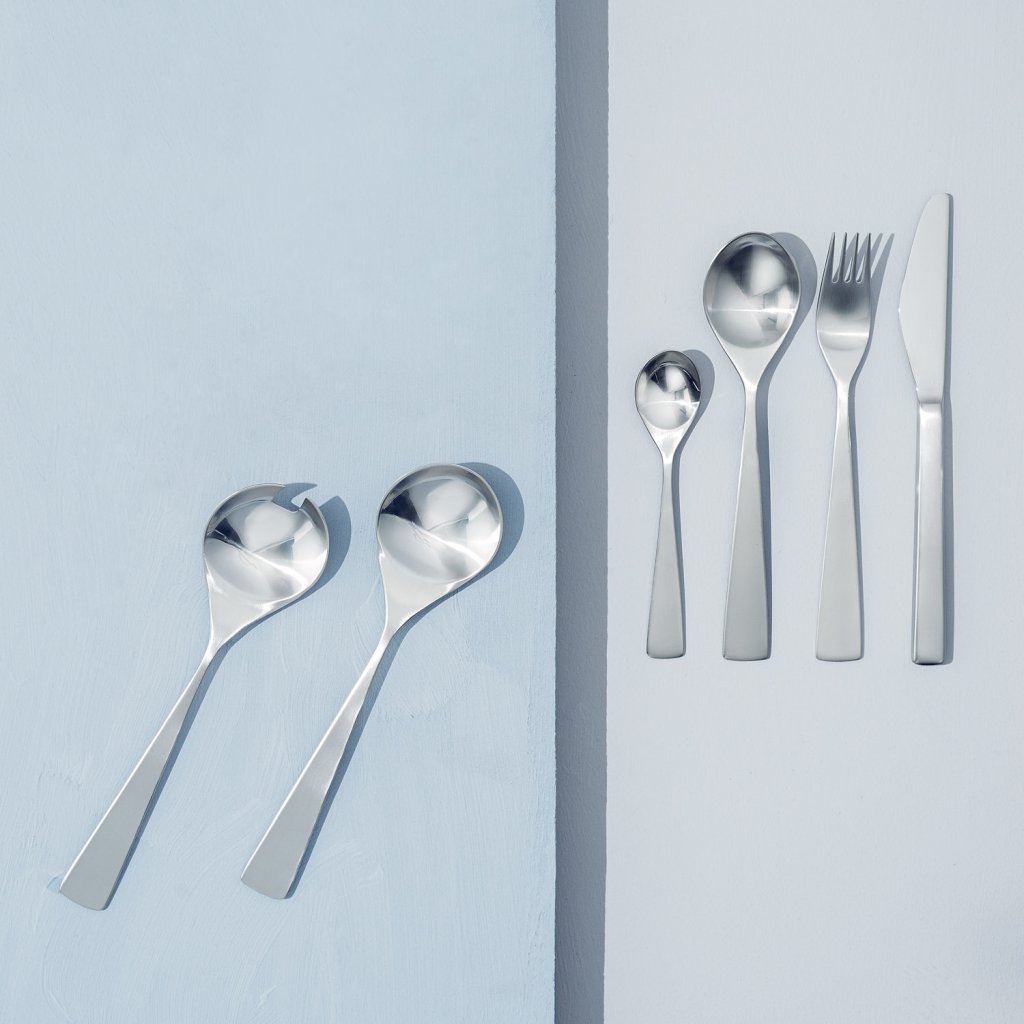 Serija Maya je bila ustvarjena leta 1962 in je od takrat nekakšna "družinska srebrnina" skandinavskega oblikovanja. Za jedilni pribor je značilen ročaj, ki se naprej zoži v trikotni vzorec. Za žlice in žličke, med katere spada tudi ta desertna žlica, je značilen skoraj okrogel zajemalni del. Žlica je izdelana iz visokokakovostnega nerjavečega jekla.