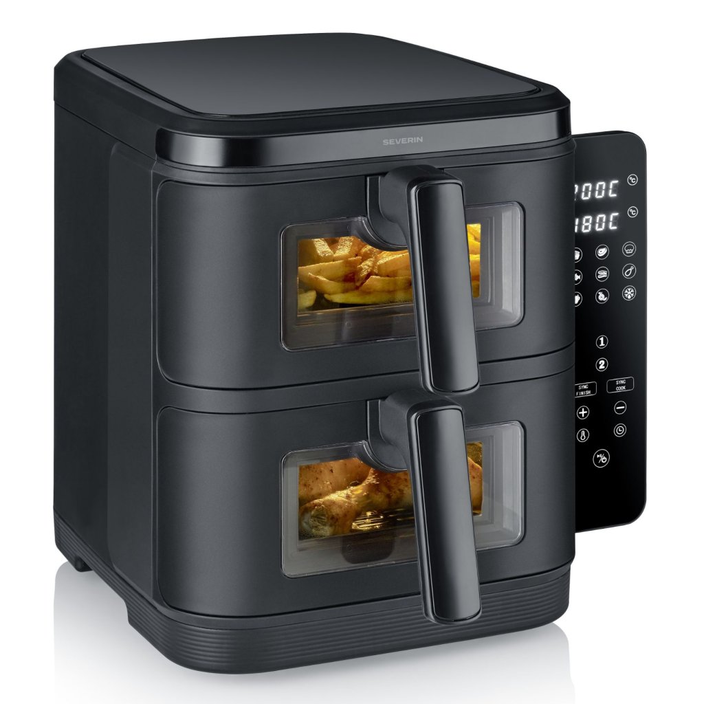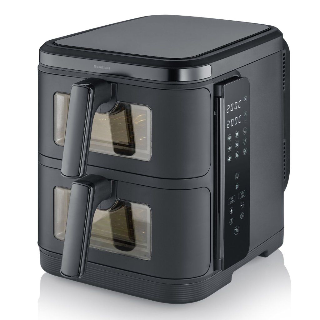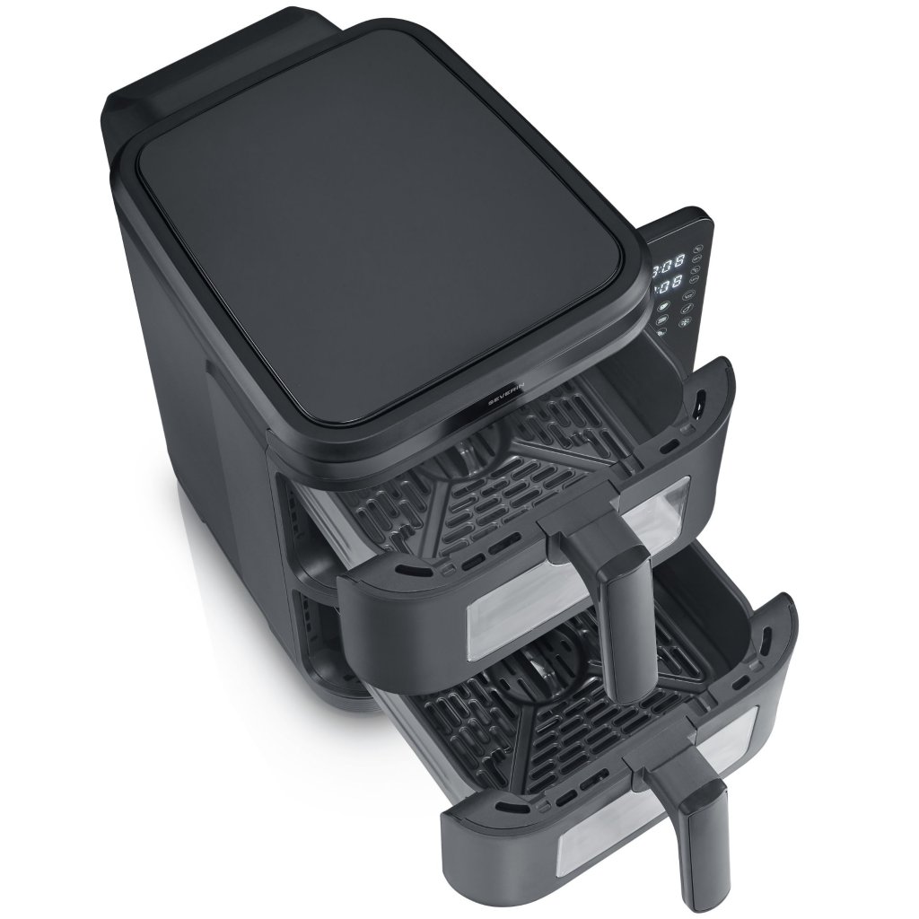 - zračni cvrtnik Severin FR 2468 z dvojno postavitvijo ponuja zdravo kuhanje brez olja v kompaktni in zmogljivi zasnovi