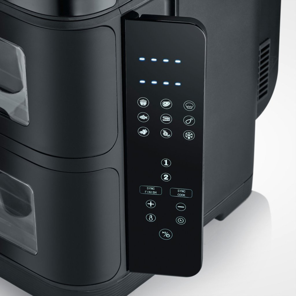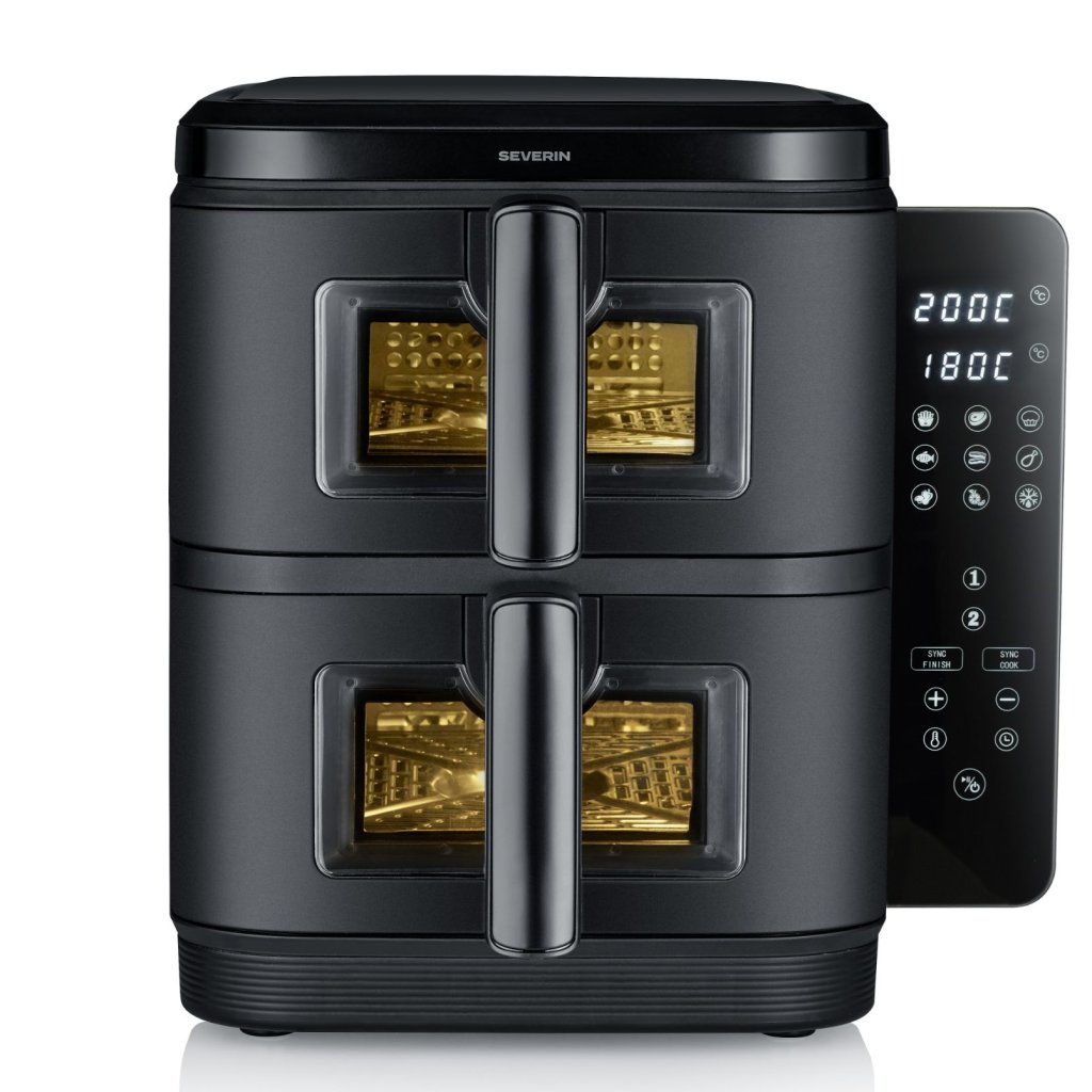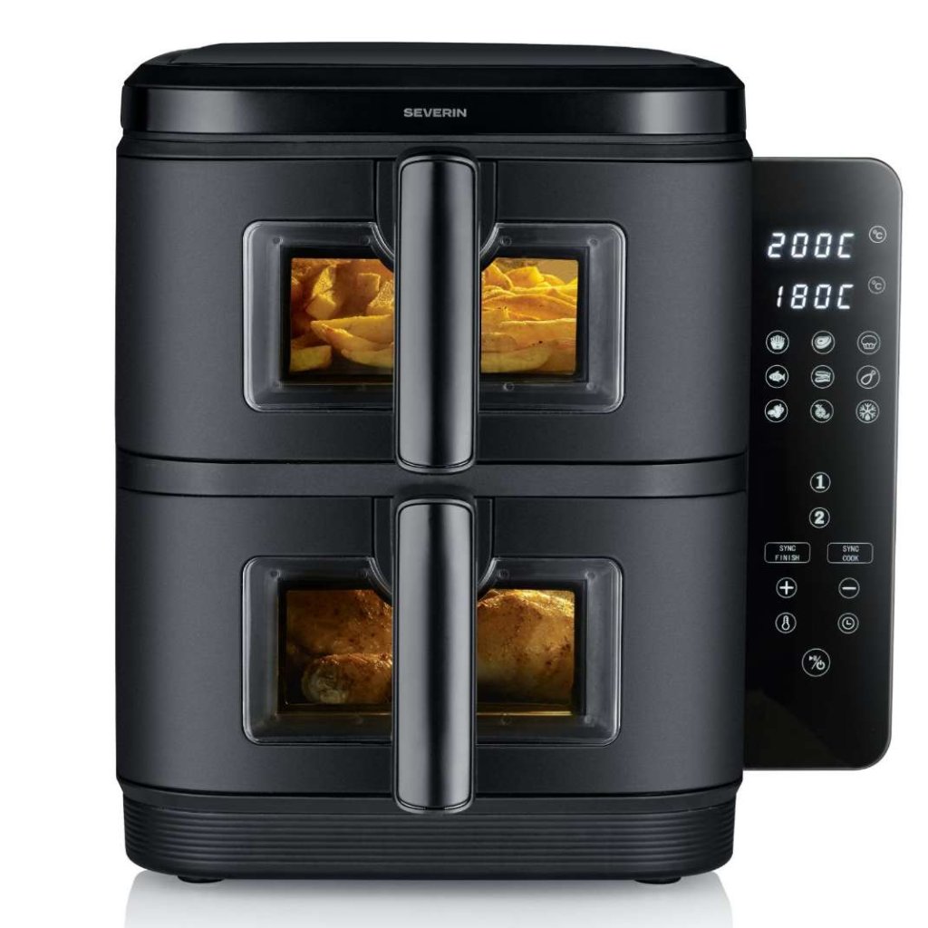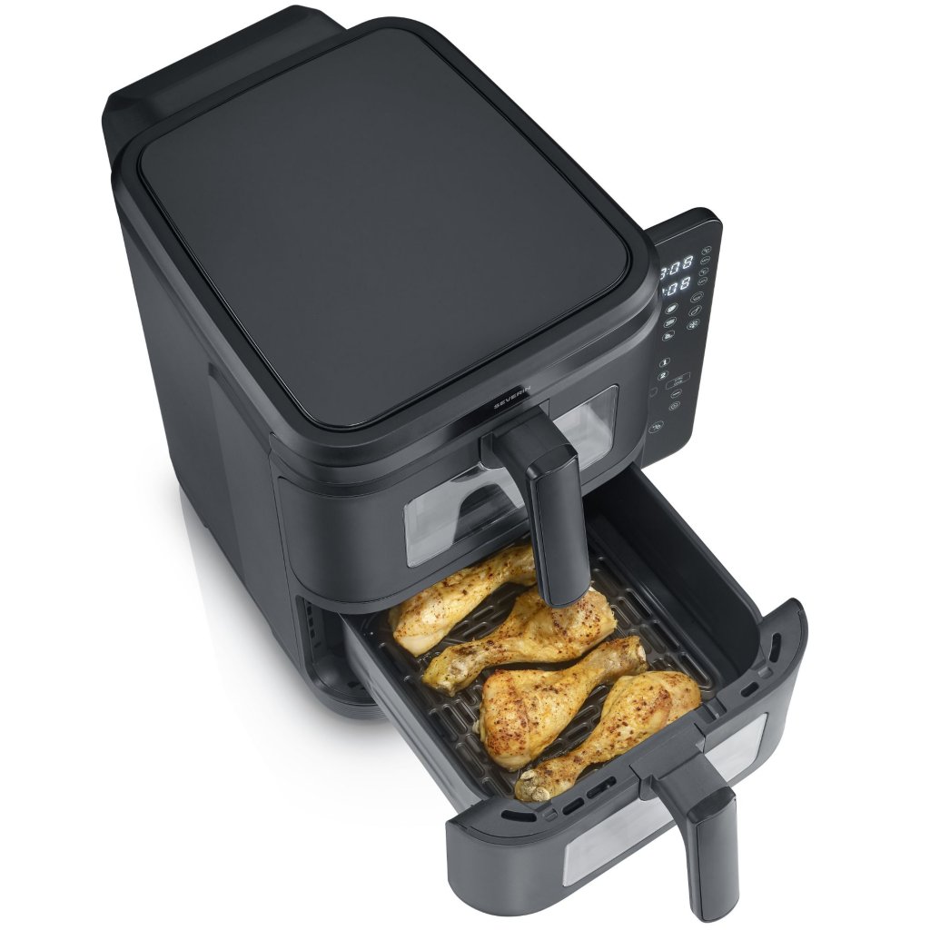- zračni cvrtnik Severin FR 2468 z dvojno postavitvijo ponuja zdravo kuhanje brez olja v kompaktni in zmogljivi zasnovi