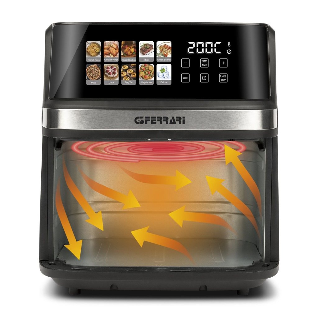 - opremljen z 10 samodejnimi programi (krompirček, piščančja krila, pečen piščanec, meso, školjke, pica, torta, jajčna pita, zelenjava, odmrzovanje)